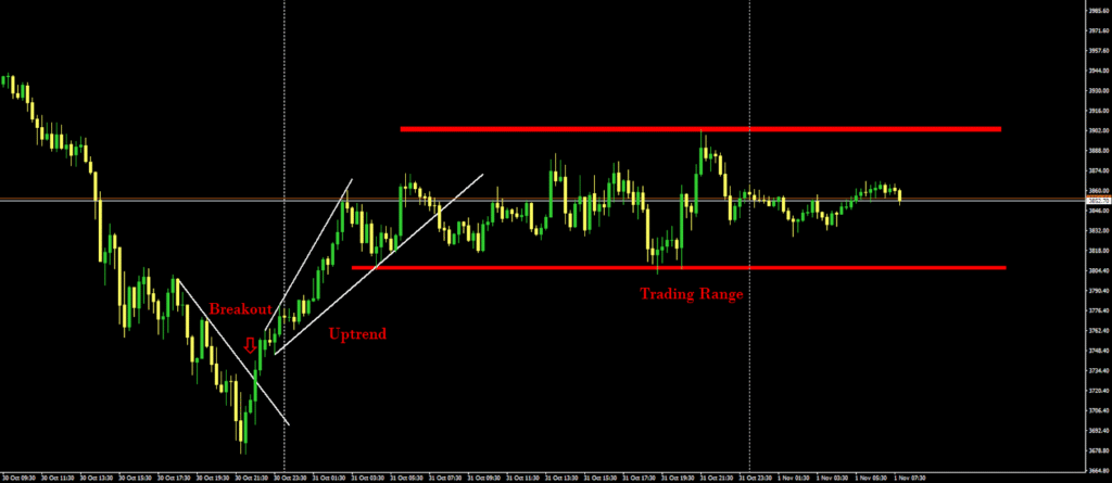 Following confirmation by developers on the Oct 30 ACDC consensus-layer call that Ethereum Fusaka upgrade is set to go live on Dec 3, 2025, ETH has broken above the upper boundary of the previous downward channel at $3,728 in a spike-style breakout. Price then entered an upward channel, rising to around $3,859. ETH broke through the bottom of its rising channel on Oct 31, which led the ETH into a sideways trading range where it consolidated between $3,801 support and $3,902 resistance. The most likely near-term outcome remains fluctuation between these levels until a significant breakout creates a new trend.